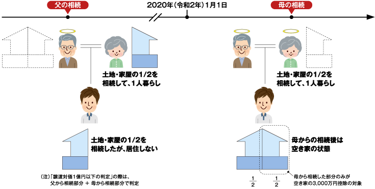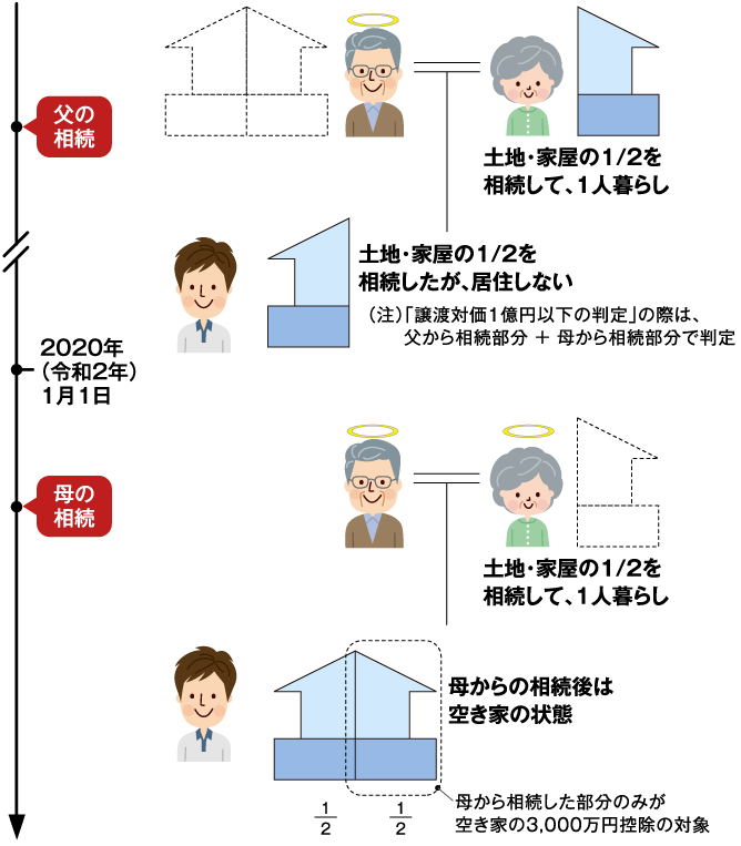 Q65母が亡くなり、長男が相続により被相続人の居住用家屋を取得しました。母が亡くなる前の父の相続の際に、すでに2分の1を相続により取得しています。