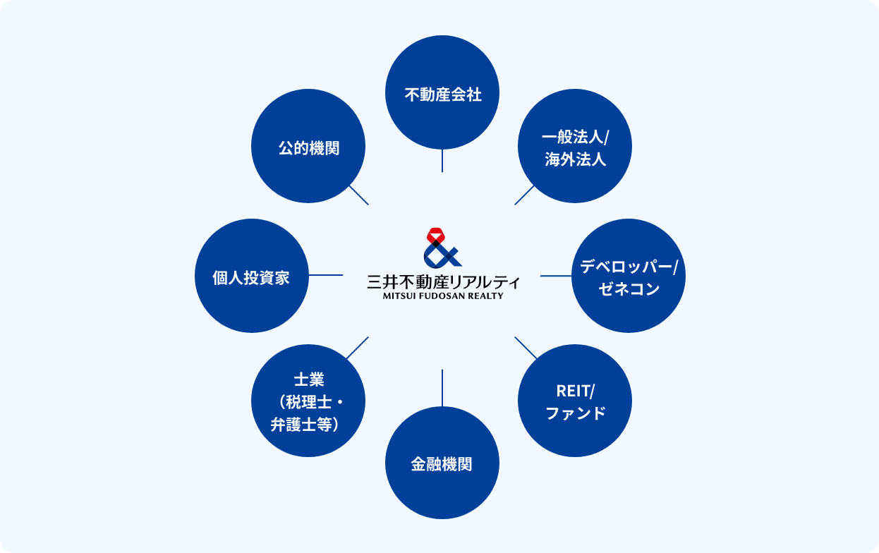 当社は、個人投資家から一般法人、公的機関など、多様なステークホルダーと密接に連携し、複雑な不動産取引にも対応しています。最適な売却プランの策定や相続・事業承継に関する戦略立案など、専門的な知識と豊富な経験を活かして、お客様の期待に応えるサービスを提供します。