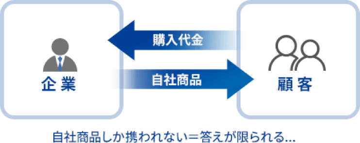 一般的に「営業」という言葉を耳にしたとき、どんなイメージを抱きますか?多くの場合は下図のような「セールス」の仕事を思い描くと思います。一般的な「セールス」の仕事は、自社の取り扱う商品の魅力を訴求し、ユーザーに買ってもらうことを目的としますが、顧客に提供できるモノは自ずと限られます。一方、不動産流通事業のビジネスモデルは、不動産取引のサポート・フォローであり、セールスの仕事とは性質が違ってきます。