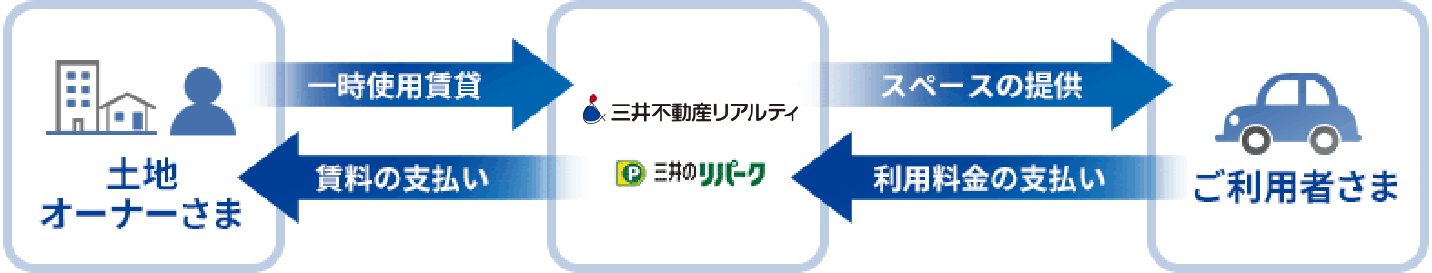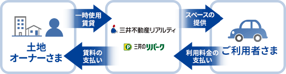 当社では不動産有効活用として駐車場事業を展開しています。駐車場事業は、土地の所有者(オーナー)さまが所有している遊休資産の土地を当社が借り上げて、駐車場や駐輪場を設営し、ご利用者さまに時間貸しなどとして駐車・駐輪スペースを提供する事業です。駐車場事業は、オーナーさまに土地の有効活用のソリューションを提供するだけでなく、駐車場が開設される周辺エリアの違法駐車を減少させるといった社会貢献性も持ち合わせています。