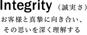 "人"が"人"に提供するサービスにより成り立っている当社にとって、お客さまに対する"姿勢"、とりわけ「誠実であること」は、最も重要なことです。当社にとっての"誠実さ"とは、お客さまの思いを真摯に受け止め、深く理解し、行動するということであり、常にフェアで高い倫理観を持った、お客さまのベストパートナーであり続けます。