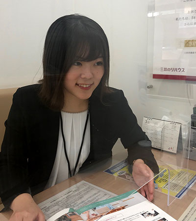 主に購入希望のお客さまを担当に持ち、物件を探し提案・ご案内・お引渡しまでのお手伝いをしています。物件調査やネット掲載のための写真撮影のほか、少しずつではありますが、先輩に同行し売却のお手伝いもしています。