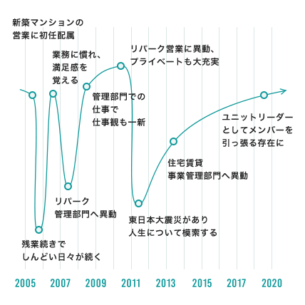 仕事に取り組むうえで大切にしているのは、“前例にとらわれない挑戦心”です。私は、入社6年目にシェアリング事業本部の管理部門から営業部門へ異動しました。「三井のリパーク」の営業は、お客さまの大切な資産である土地を駐車場として活用し、綿密な市場調査や収益分析から利益を生み出す“資産活用のプロ”です。当時の私は、駐車場経営に関して営業ノウハウも現場感覚もない素人同然でしたが、早く経験を積み、プロとしてお客さまに認められたいという気持ちは人一倍強く、「初契約は必ず自力で獲得する」という目標を自らに課しました。
