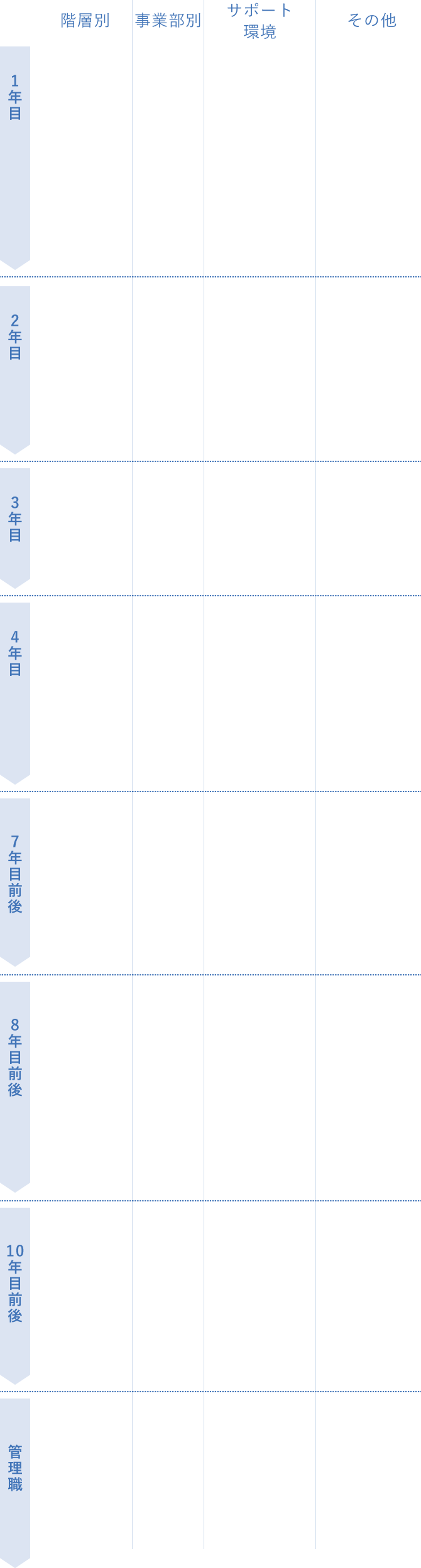 入社後4年間の振り返ると今後の自身の役割およびビジョンを考察するプログラムです。