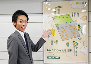 土地オーナーさまからのお問い合わせによる情報や遊休地を探し、得た情報をもとに駐車場による土地活用のご提案をし、事業地の仕入れを行います。ご提案の際は、周辺環境や近隣にある他社の駐車場の規模や利用状況などについて調べ、レイアウトの作成、設備・工事費用の算出、駐車場料金の設定、収支の予測など、具体的な運営管理の内容を決めていきます。