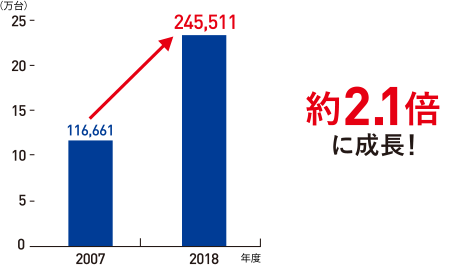 そして現在、三井不動産リアルティグループでは、47都道府県に「三井のリパーク(駐車場事業)」を展開しています。管理台数は、2007年当時と比較して、2018年時点では約2.1倍に成長しています。今後とも社会貢献を意識しながら、事業拡大に取り組んでいきたいと考えています。
