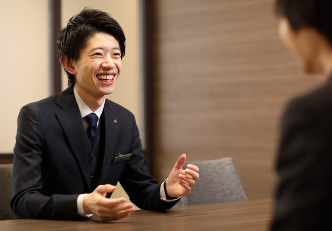 名刺に「宅地建物取引士」と記載されることです。「宅地建物取引士」であることで、お客様にもご安心いただけます。お客様以外にも、他の企業の方と話す際に「若いのにすごいね」と言っていただき、そこから会話が広がることも多くあります。特に入社当初は、私は「三井不動産リアルティ」という会社のブランドでお客様から信頼を得ている部分が大きいと感じていました。しかし、「宅地建物取引士」の資格を取得してからは、一人の営業としてお客様から認識していただけるようになったと思います。私たちの仕事では、不動産・住宅ローン・税金などの様々な知識が必要とされます。お客様へのさらなるサービス向上のためにも、「宅地建物取引士」以外の資格取得にもチャレンジしていきたいと考えています。