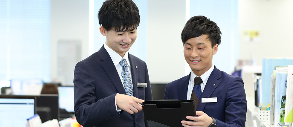 H・Kさん- 一人の目だけではなく、ユニットリーダーや他のメンバーにも意見をもらいながら仕事に取り組んでいます。個人で営業するのに比べて、相談しやすい環境であると思いますね。事務作業や営業などの業務を分担しながら、お互いをフォローしあうことをいつも意識しています。