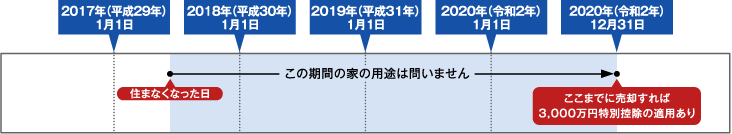 住まなくなって3年経過した日の年末までに譲渡した場合