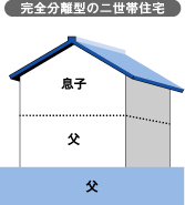 完全分離型の二世帯住宅で、土地が父の単独所有の場合、土地について父利用部分(全体の建物の床面積のうち、父所有分が占める割合)は居住用となりますが、息子利用部分(全体の建物の床面積のうち、息子所有分が占める割合)は、自己の居住用以外となり、居住用の特例の適用は受けられなくなります。