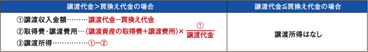 - ②買換え資産は譲渡資産の収入割合に応じて取得