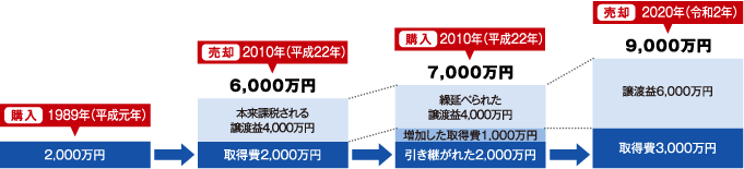 この場合、譲渡資産の「取得費」は次の買換え資産に引き継がれますが、「取得日」は引き継がれません。