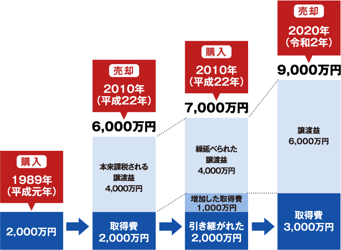 譲渡資産に対する譲渡所得税は買換え資産に引き継がれます。