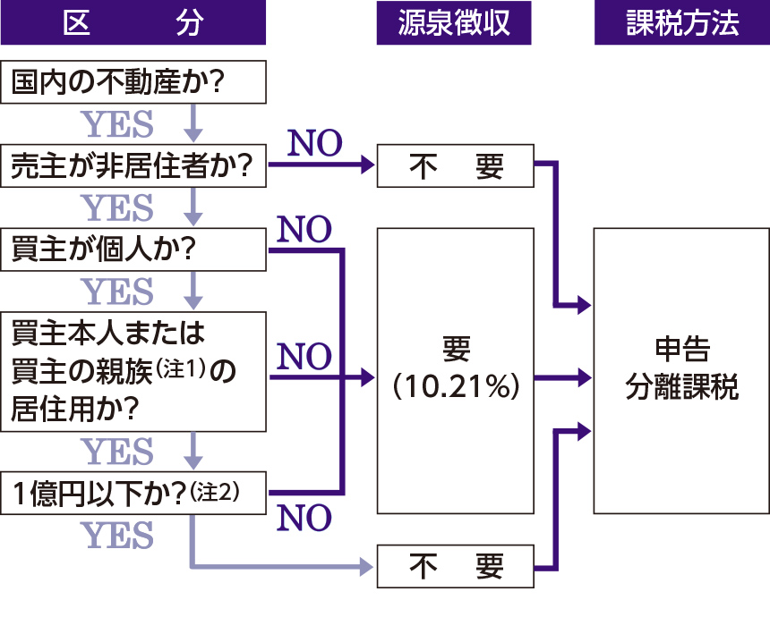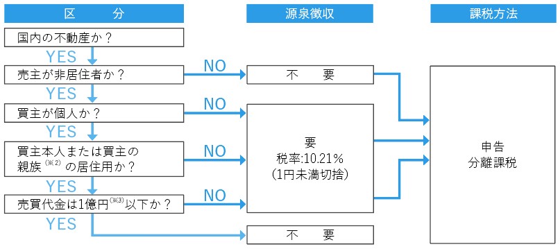 (※1)売買代金には、残代金の他、手付金や中間金、固定資産税等精算金も含まれ、それぞれの支払時に源泉徴収する必要があります。