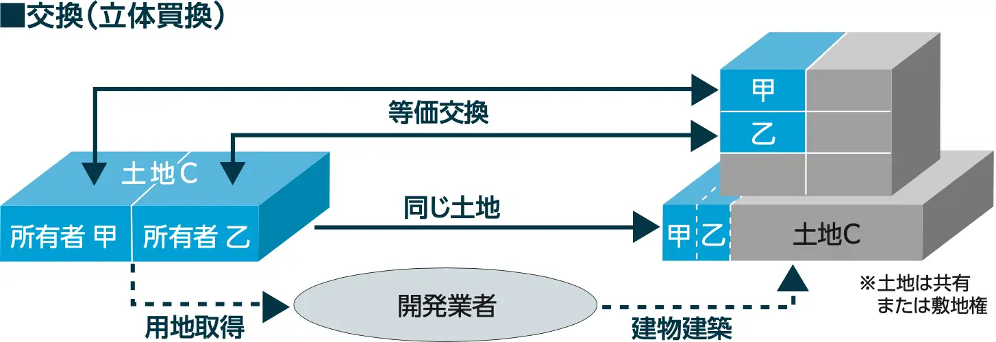 土地・建物等の譲渡による譲渡所得の課税対象となる取引には、一般的な土地・建物等の売却のほかに、買換えや交換といった取引も含まれます。