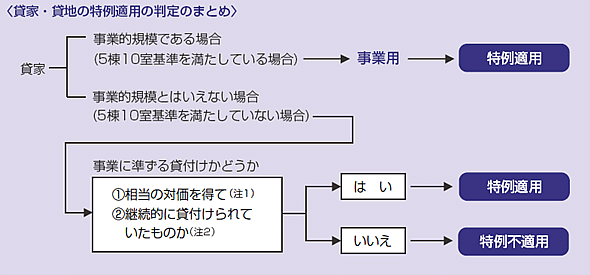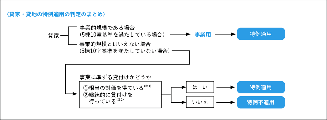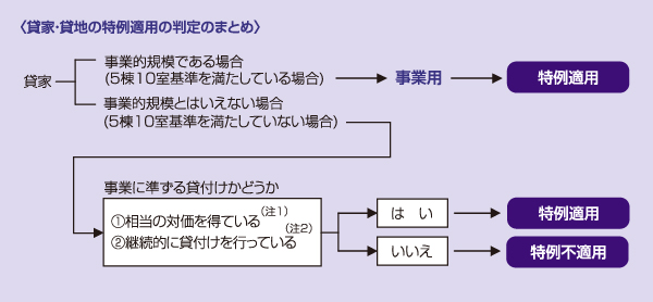 (注2)「継続的に貸付けを行っている」とは、その貸付けの契約時の現況において、貸付けが相当期間継続して行われることが予定されているかにより判断されます。その貸付けをした際にその対価を一時に受け、その後一切対価を受けていない場合には、継続的に対価を得ていることには当たりません。