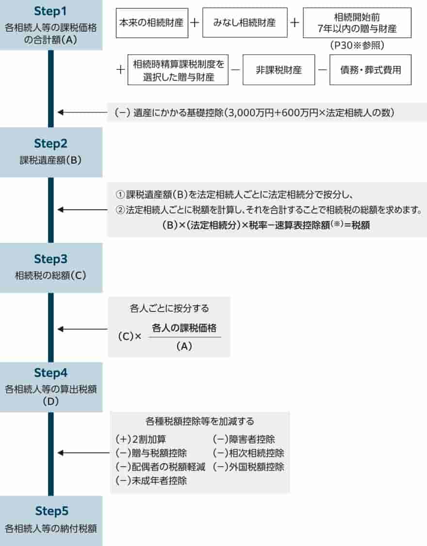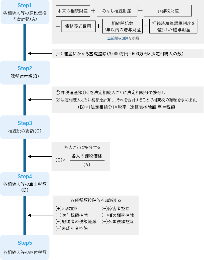 ②法定相続人ごとに算出した相続税を合計し総額を求める