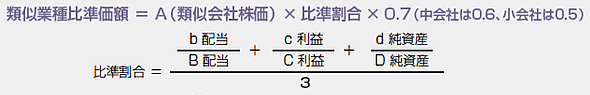 b 前2年の1株当たりの年平均配当金額 c 直前期1年間(選択により2年間の平均)の1株当たりの利益金額 d 直前期末の1株当たりの純資産価額(帳簿価額)