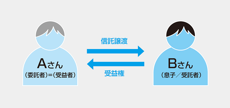 この事例ではAさんが委託者=受益者という関係となっていることを前提に説明をいたします。